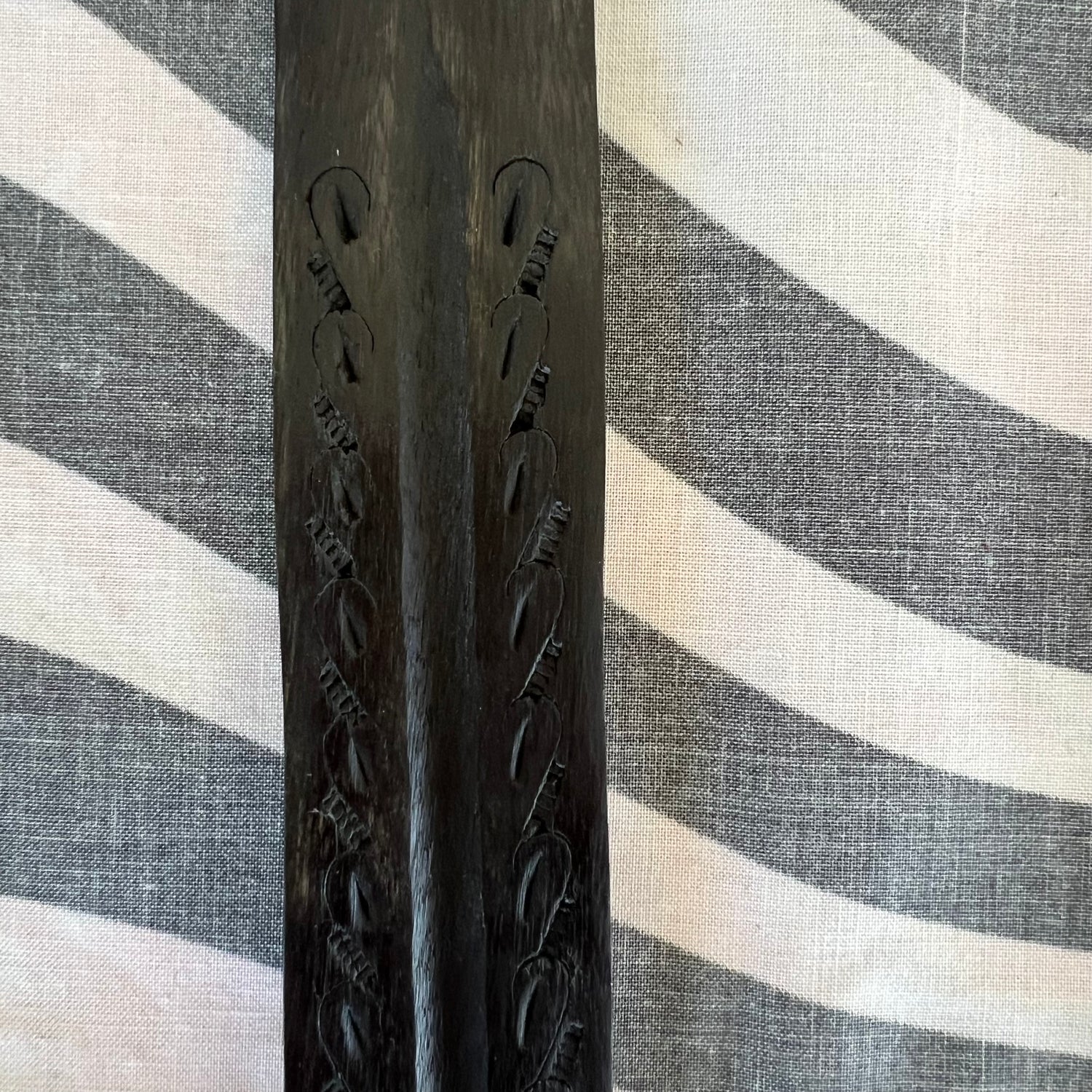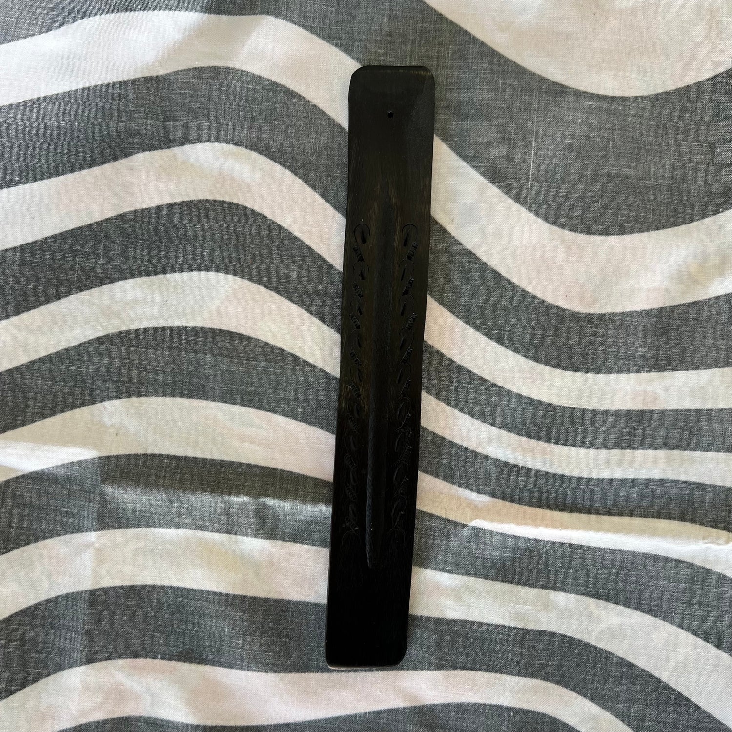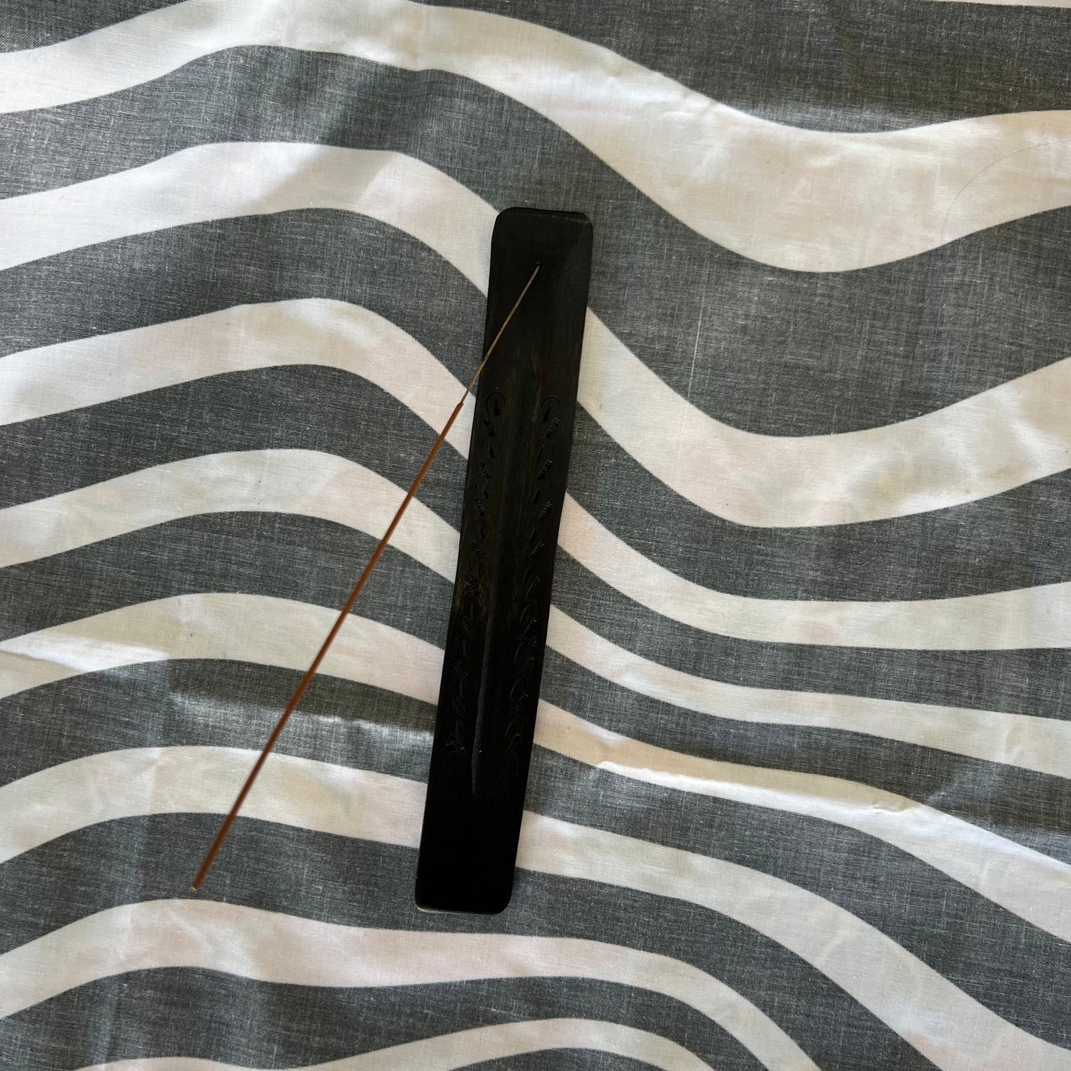 BASIC BLACK WOOD INCENSE HOLDER. DIMENSIONS: 11"