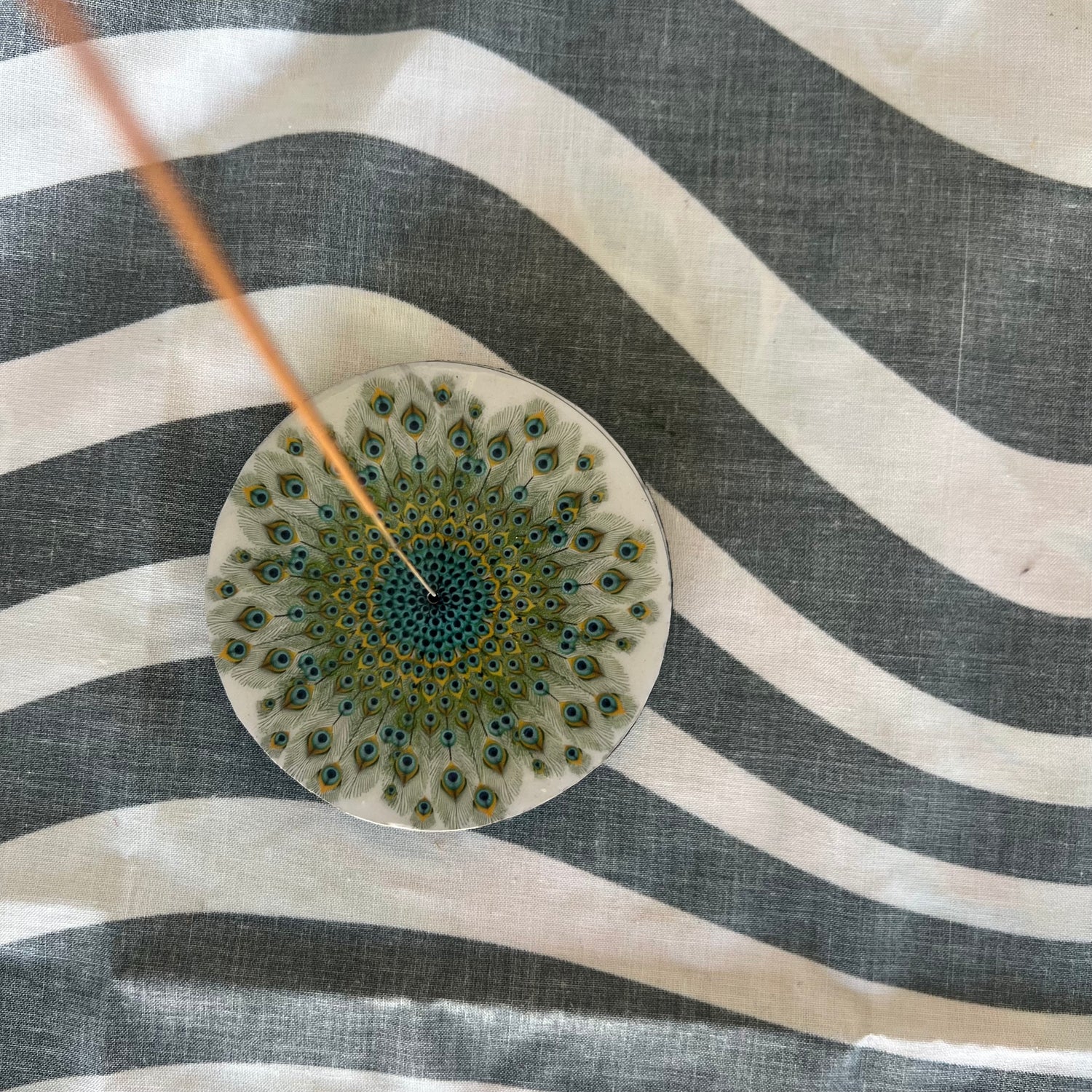 Peacock Round Wooden Ash Catcher Stand 4". Made in India