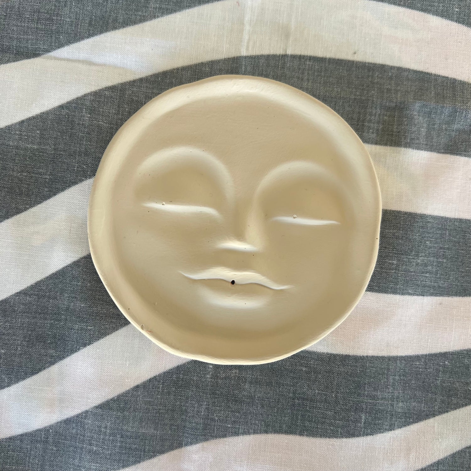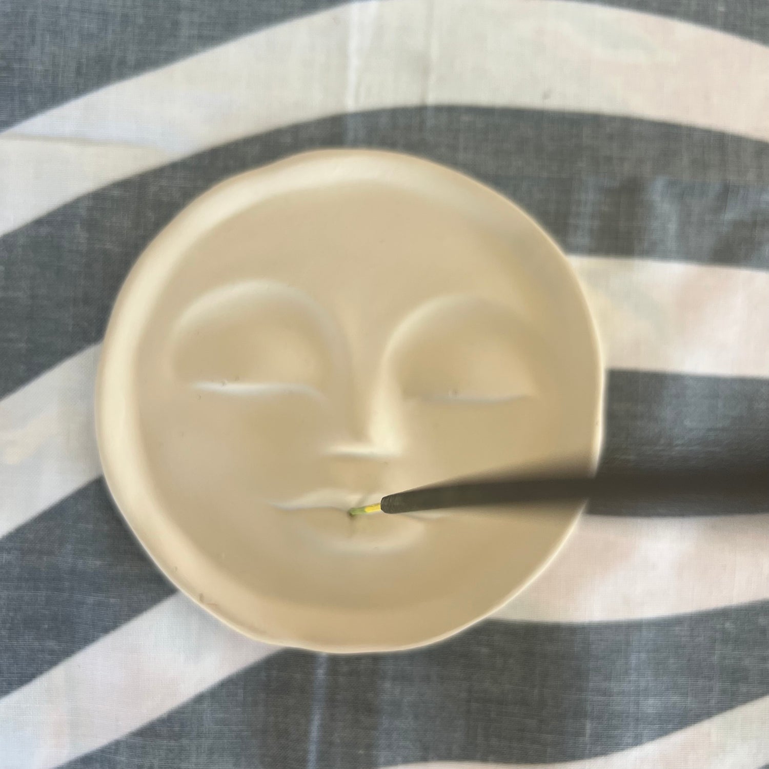 This beautiful moon goddess incense burner is created with concrete. Beige in color Measures 4.5" around.