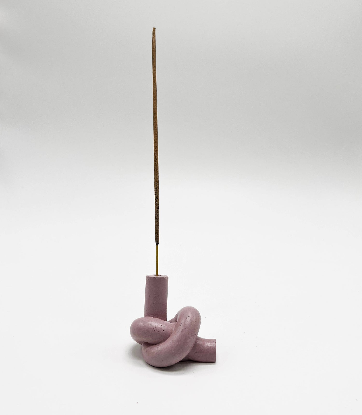 A handmade concrete knot shaped incense holder.